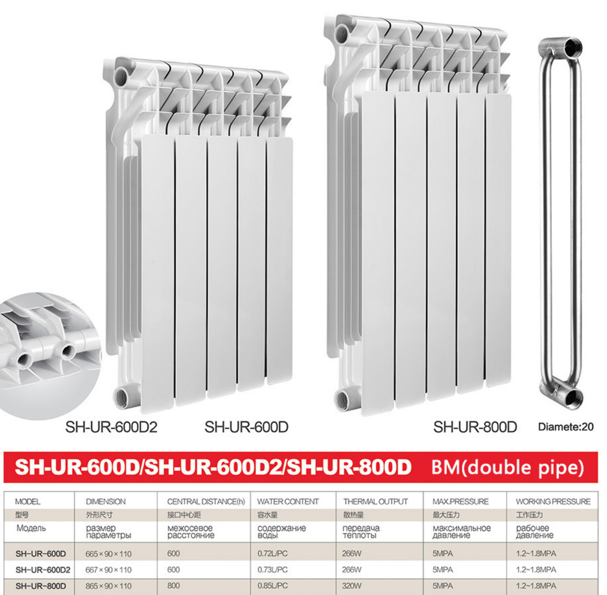 Bimetal Water Radiators (double pipe,600D/800D)